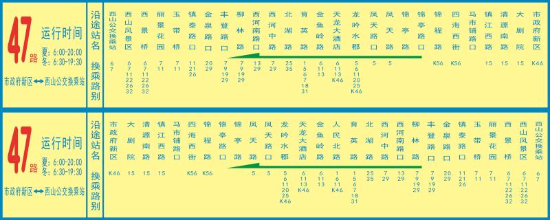 47路:市政府新區——西山公交換乘站